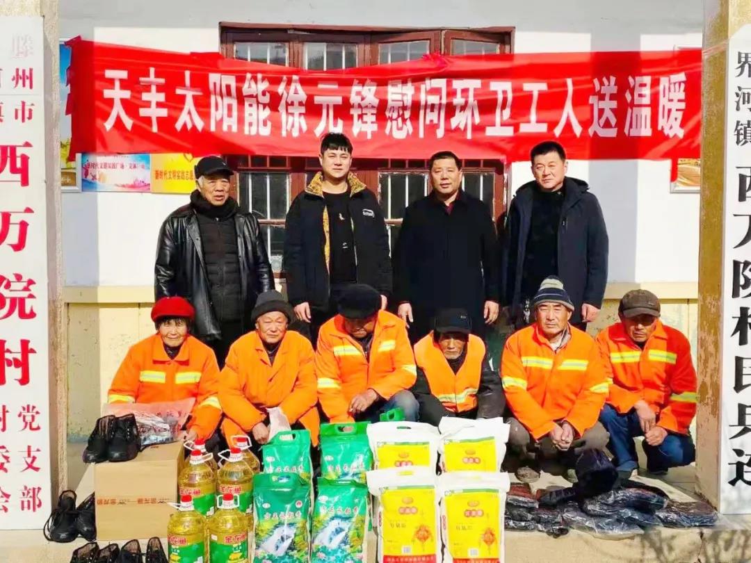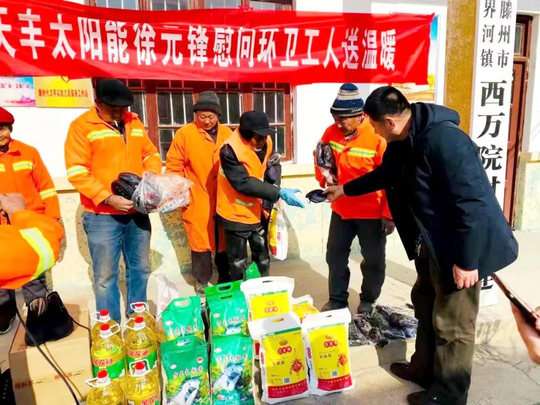 近日寒潮來(lái)襲、氣溫驟降,環(huán)衛(wèi)工人作為城市的美容師,每天起早貪黑,用自己辛勤的汗水維護(hù)著干凈整潔的市容環(huán)境,為了表達(dá)對(duì)環(huán)衛(wèi)工人辛苦付出的感謝,切實(shí)關(guān)心關(guān)愛(ài)環(huán)衛(wèi)工人冷暖,2021年1月14日,天豐優(yōu)秀代理商徐元鋒趕赴滕州,在嚴(yán)寒之際為環(huán)衛(wèi)工人送去了特別的“溫暖”。